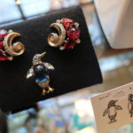 下のブローチもweiss社のツリーです。6.2㎝の堂々としたサイズは冬の厚手のコートやニットにも映えます。大小色とりどりのラインストーンにシックなアンティークゴールド、わかりやすいもみの木のシルエットがクラシックで年齢を問わず永く使っていただけるブローチです。一年に一回僅かな時期にしか使えないけれど、一年に一回だからこそ毎年つけるのが楽しみになるような特別なものを選んでいただきたいです。