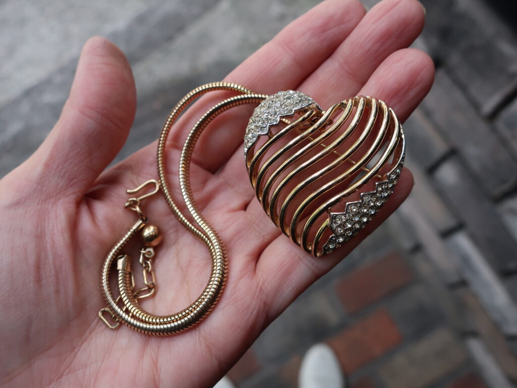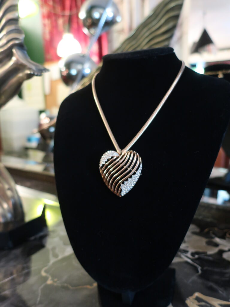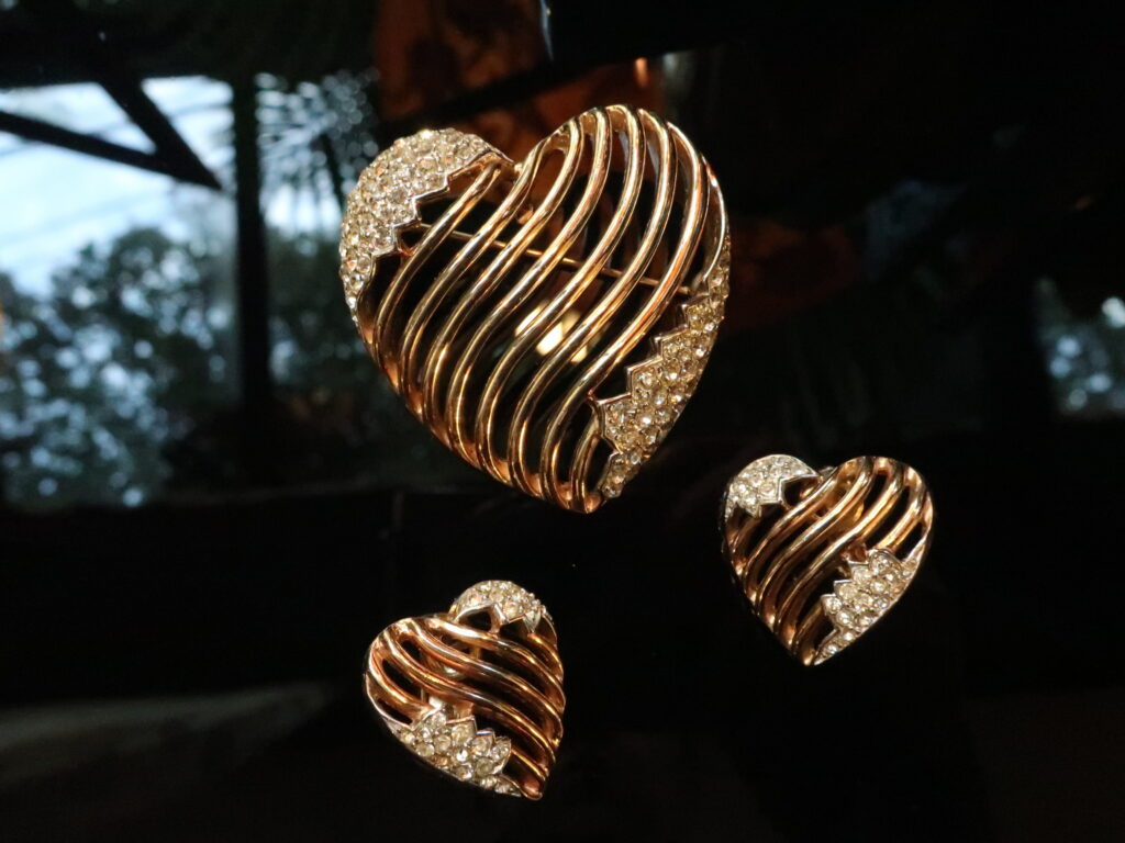 これから華やぐ年末に向けて新しいものがたくさん届いています。写真はとてもとても美しいコンディション。1950年代トリファリのハートのイヤリングとネックレス。ネックレスと言ってもチェーンが外せるのでブローチにも変身します。