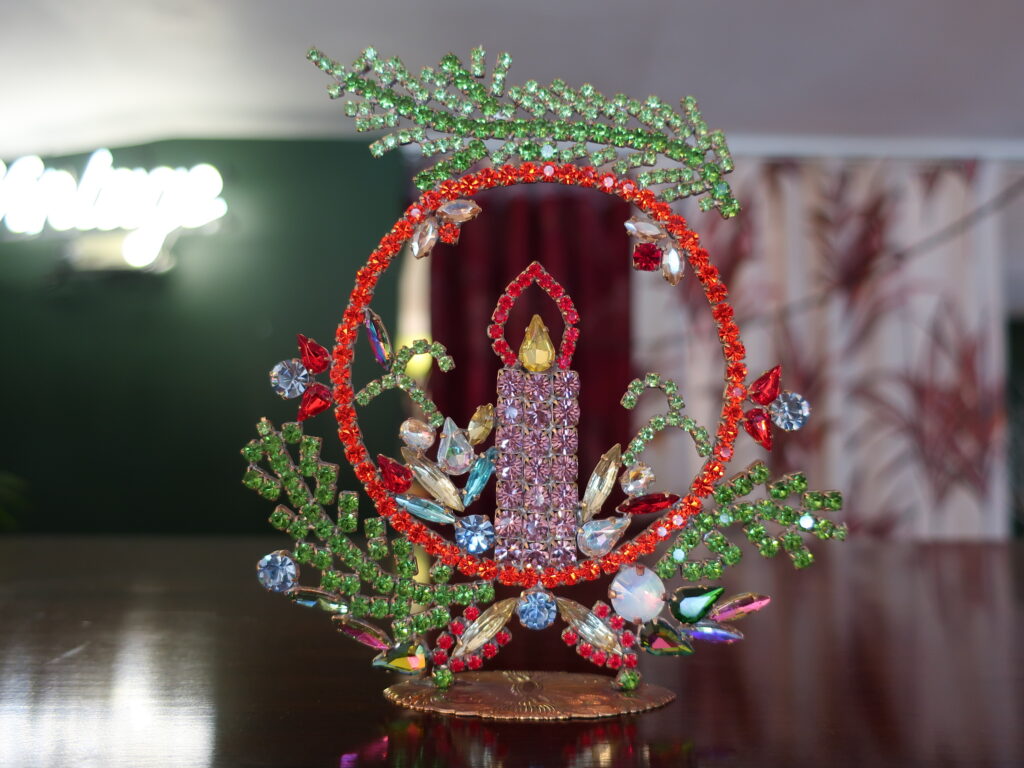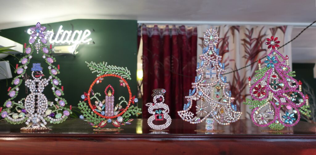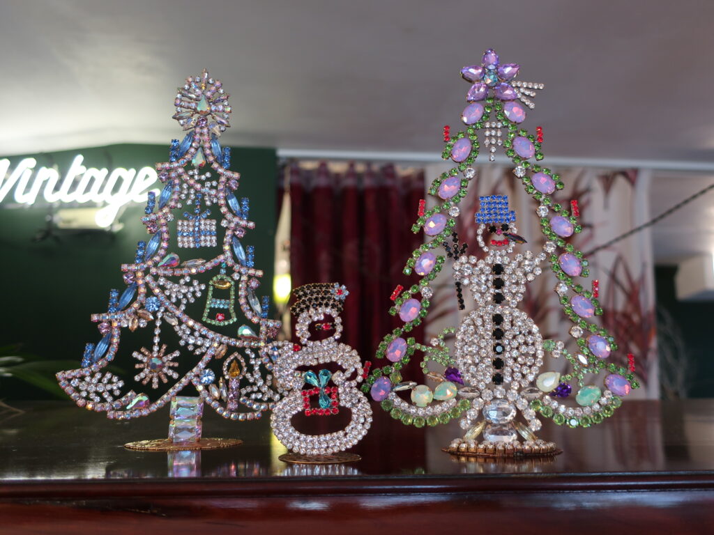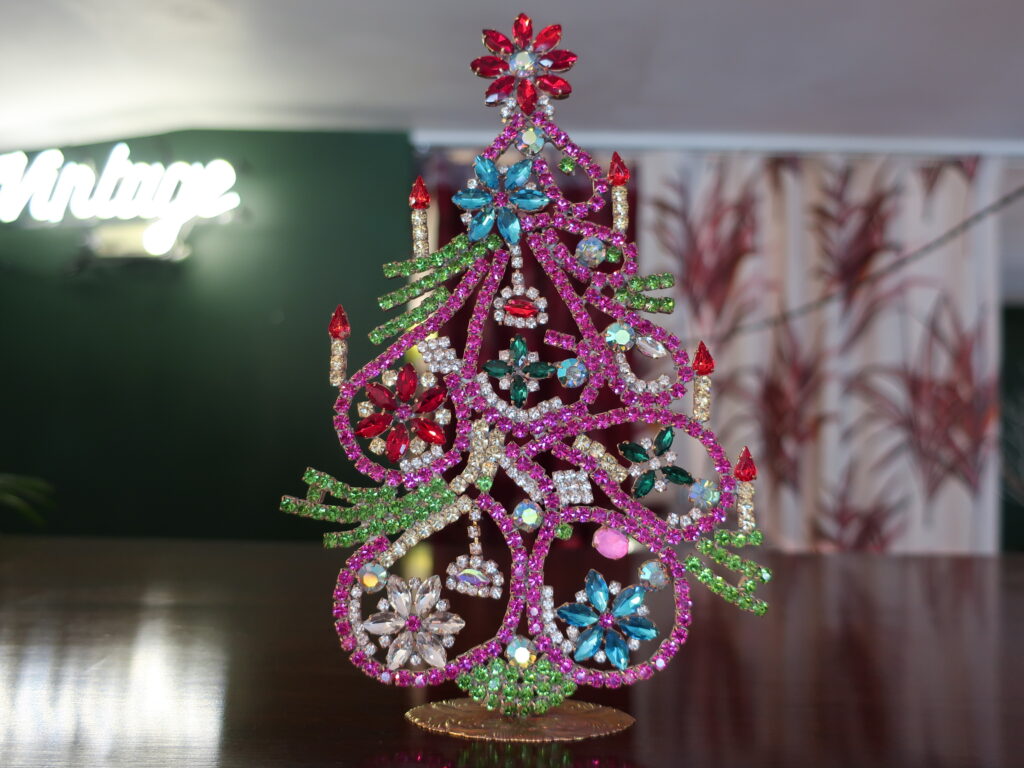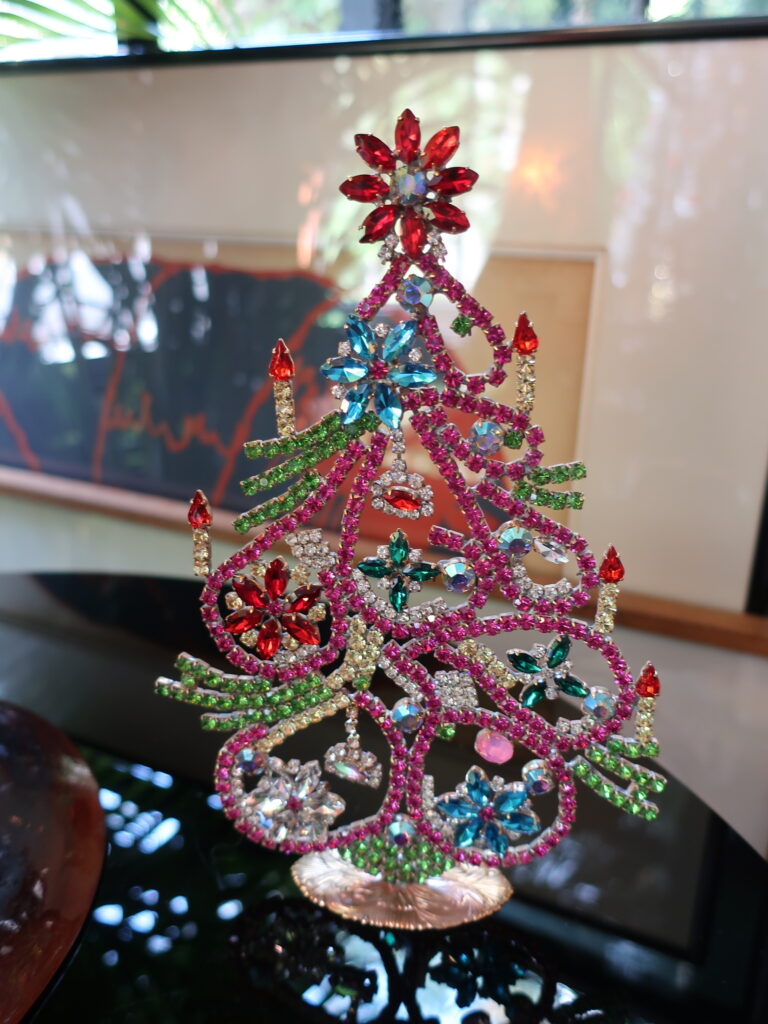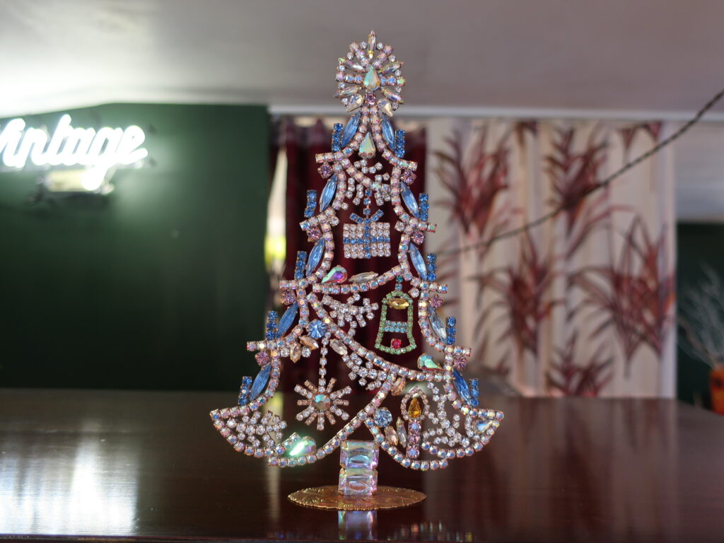 さて、チェコのツリーとキャンドルの飾りが届きました!今回のツリーはいつもと違うチェコの工房で作られたもの。ラインストーンの色味が柔らか。プレゼント、雪の結晶、ベルのモチーフが揺れ楽しく飾れるツリーなど4点です。