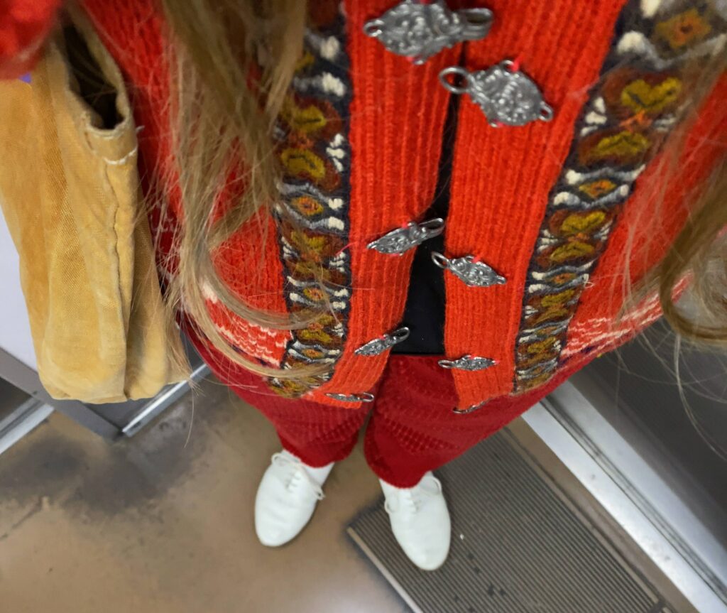 週明けはお店の前が欅の落ち葉でいっぱいでした。一段と寒くなった今週、着るものに迷走です。昨日は暖かい恰好と思い赤いコーデュロイのパンツを履きました。そして上は何を着るんだ?と悩んでいたらもう家を出る時間。だめだ~~と羽織ったのが赤いカーディガン。お店についてみるとカズレーザー状態。帰りの駅、電車で「あの人赤いな~。」って思った人、きっといただろうな。お店にいると意外にどんな格好でも平気だと思ってしまうのですが、ナチュラル系のファッションが主流の二子玉川、外の煌々と輝く白い照明の下で上下赤の人間は少し恥ずかしかったです。きっと自分が「これはいい!」と自信を持ったコーディネートだったらたとえ上下赤でも自信満々で歩けたのかな。