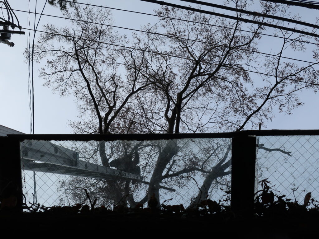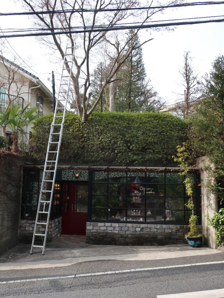 お店の上のもみじ。土が薄く木が弱くなっているそう。枯れた枝が落ちると危ないのでと植木屋さんが剪定してくださいました。「お手伝いを~」と申し出たいところですが、私にできることはあるはずもなく息を止めて見守るしかない職人技。梯子、一体どこにかけるのかと思いきや木に直接括りつけるそうです。
