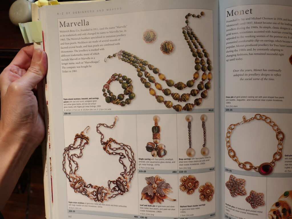 私のマーヴェラ社のイメージと言いますと、正直ほとんどないのです。あえて「マーヴェラのジュエリーを仕入れよう!」と思ったことはなく、きれいなパールのコスチュームジュエリーを仕入れた時確認してみるとマーヴェラというブランドのものだったという感じ。ペンギンが届いたタイミングで今までベルカプリで扱ったマーヴェラを振り返ってみると私の大好きだったパールの3点セットもマーヴェラのものでした。