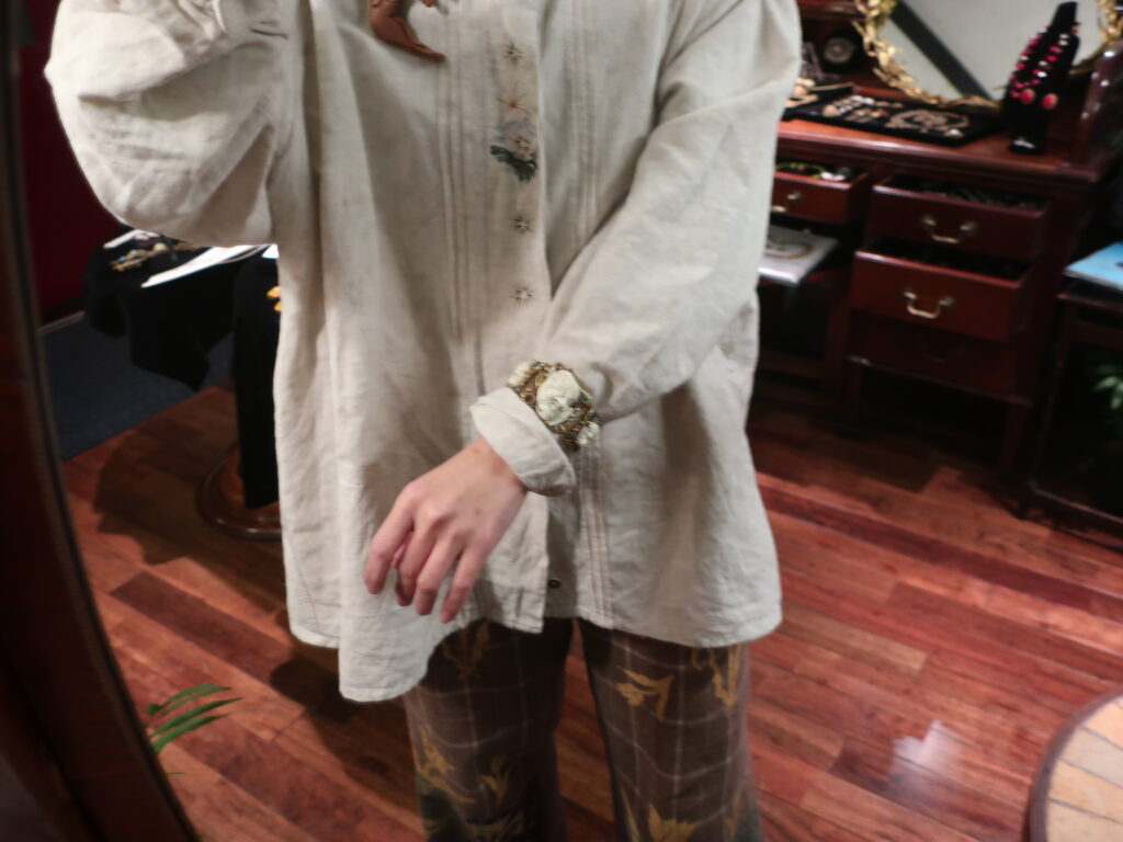 selroのブレスレット、着用してみました。ダボっとしたシャツの上から今日はつけてみるとガチャガチャ動かず良い感じがしました。