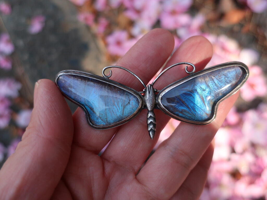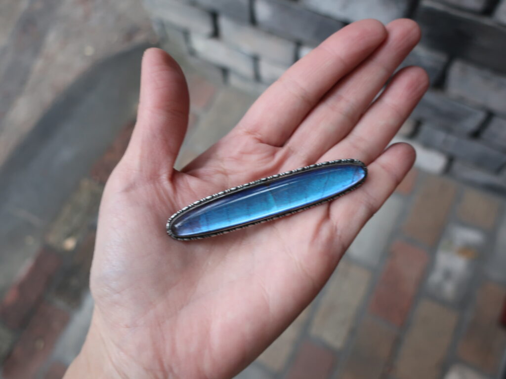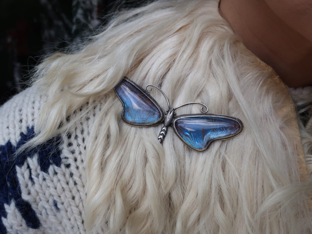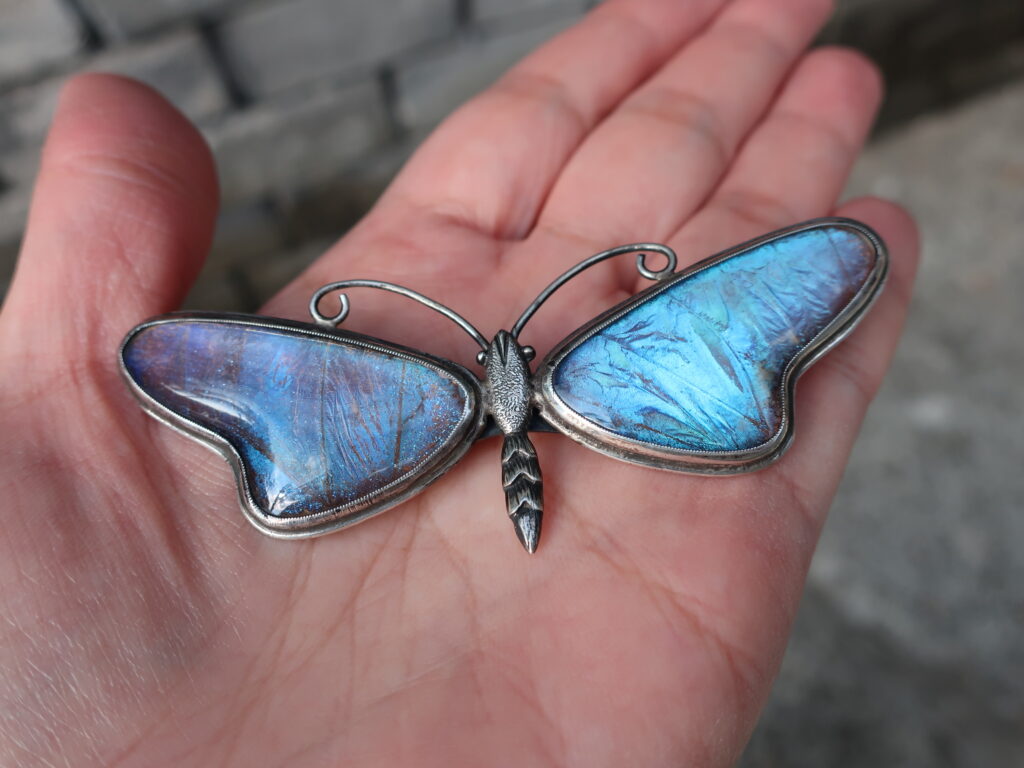 そしてうっかりオンラインショップに掲載したつもりがわすれちゃっていた、大きなモルフォ蝶のブローチをこれからオンラインショップに掲載予定です。8×1.6㎝。どれほど大きな蝶だったのだろうと想像します。美しい輝きをぜひご覧ください。