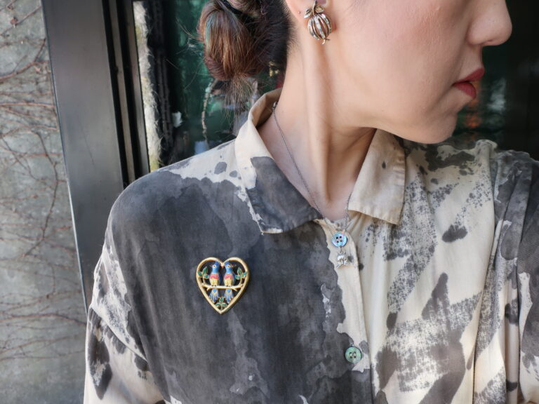 続きましてCoroのLove Birdのブローチです。去年に続き2度目の登場。それなりに大きさがあるのに軽いし、何より恋の予感!ワクワクドキドキのデザインが春にぴったりで再びお店にやってきました。