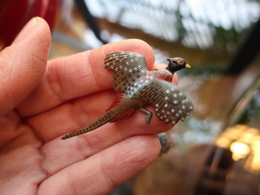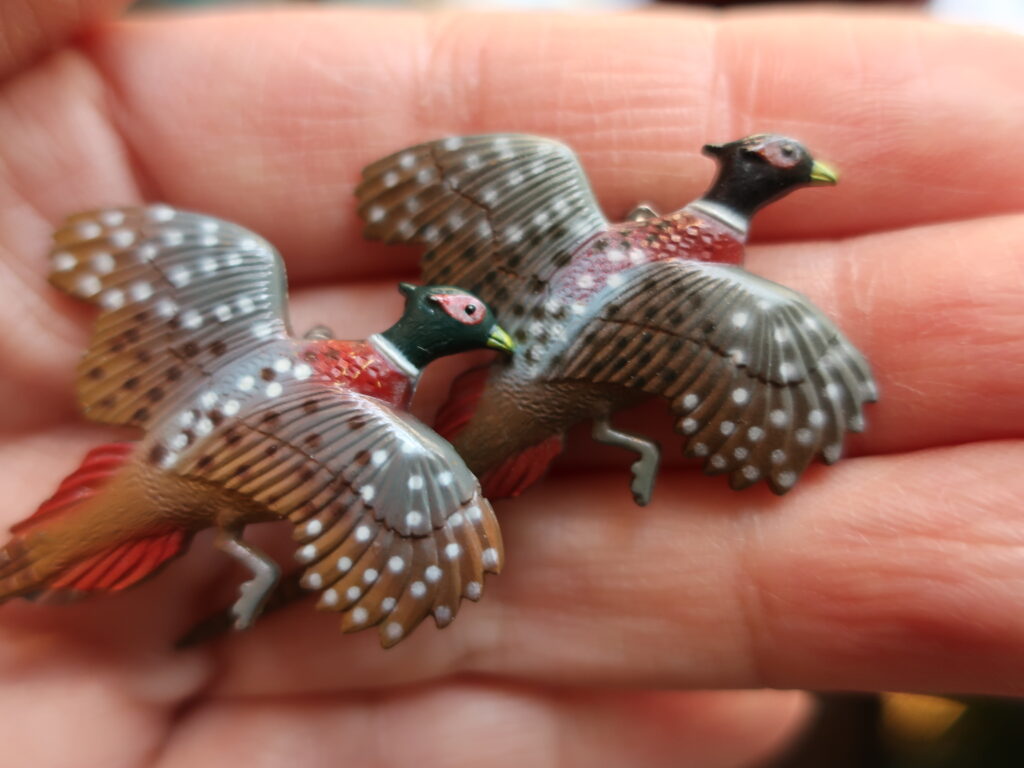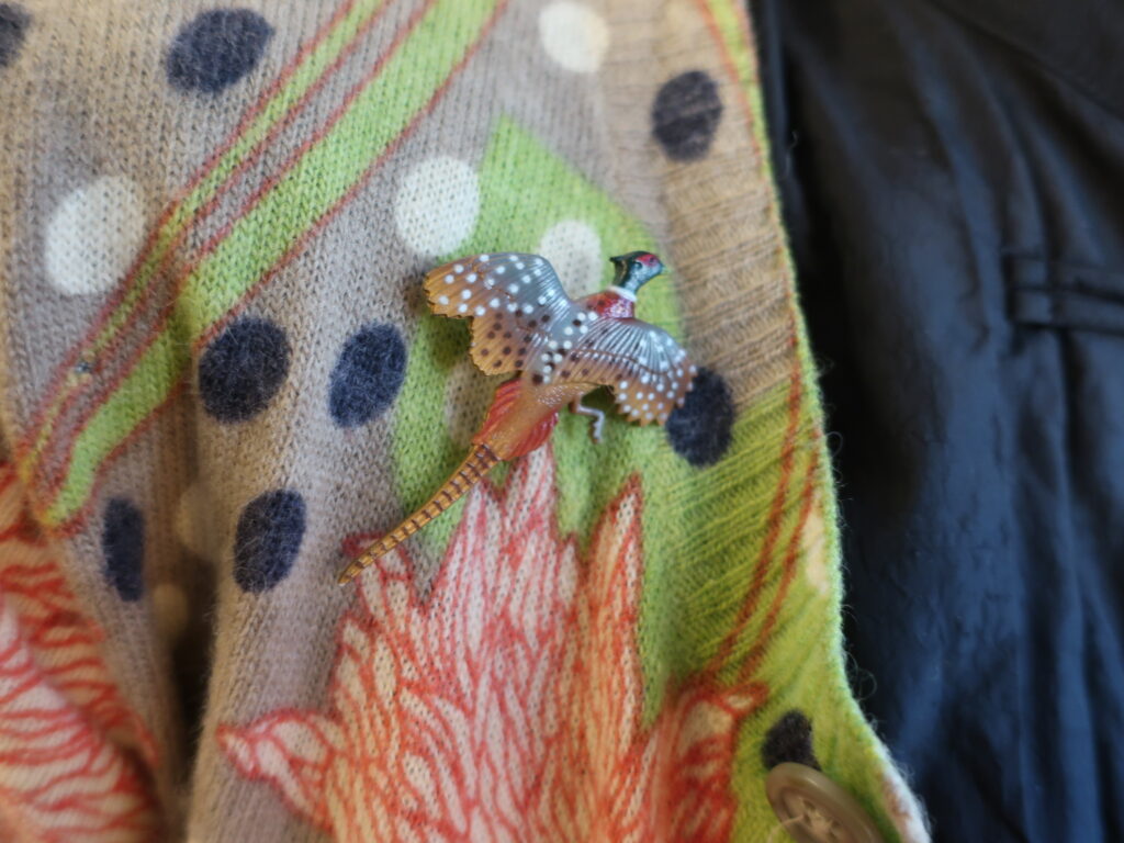 とても軽いのでどんな場所にも着けられます。種類の分かる鳥のブローチ、思い浮かぶのは鳩、イーグル、インコ、フラミンゴなどでしょうか。そんな中ちょっと渋い雉!
