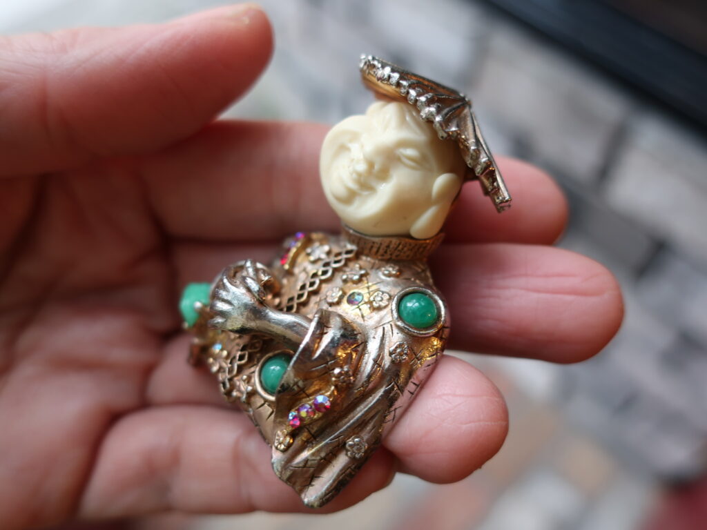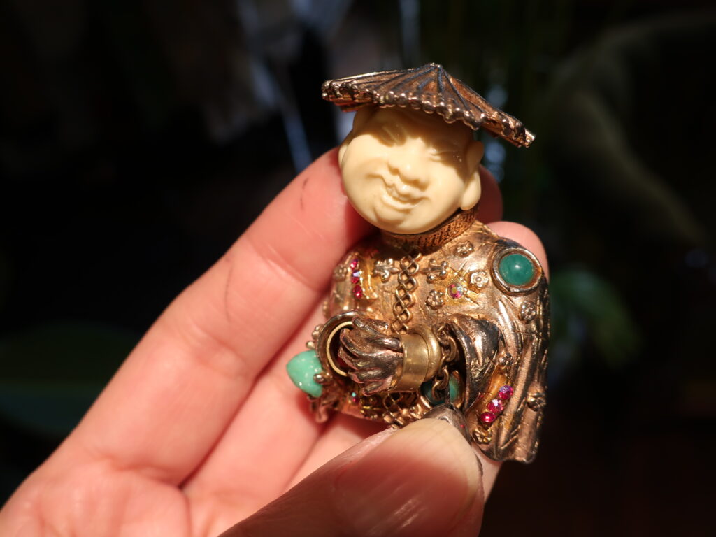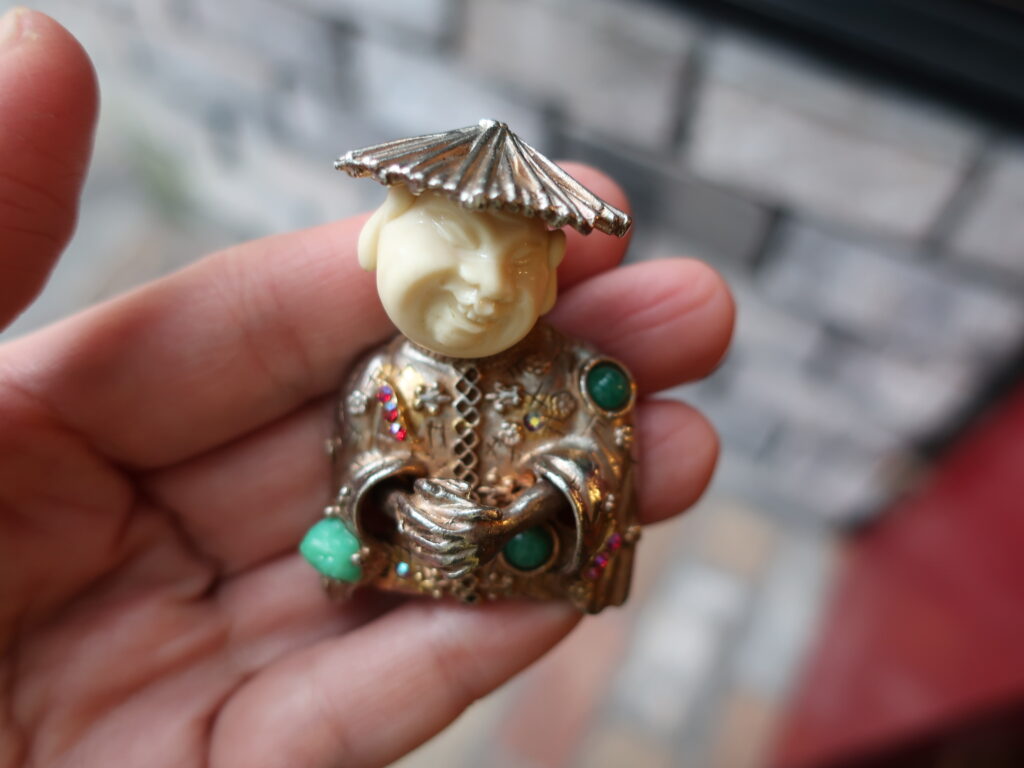 ところでHARのアジアンマンのブローチ、バリエーションが何パターンかあります。下の2点以外にも白いエナメルがかかっているものや、帽子のないお禿げバージョンなど。そんな中今回届いた2点でした。