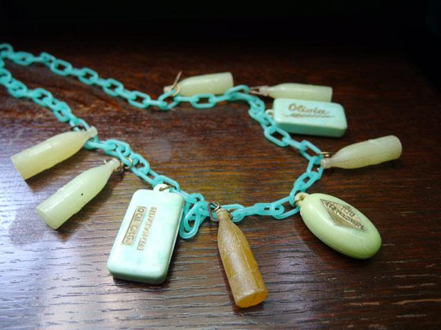 1940年代から70年代、オールドプラスチックのパーツを使って作ったネックレスをアップしました。コチラは石鹸やボトルがたくさん!http://t.co/AU0c9sCOc6 http://t.co/i5oANQAWvp