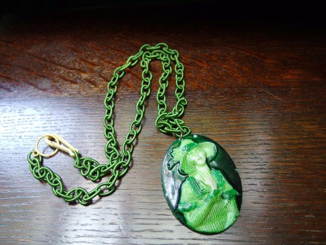 カメオ風のペンダント。チェーンもグリーンで個性的です。http://t.co/x0aUZTx5uB http://t.co/xTrAmgHI2S