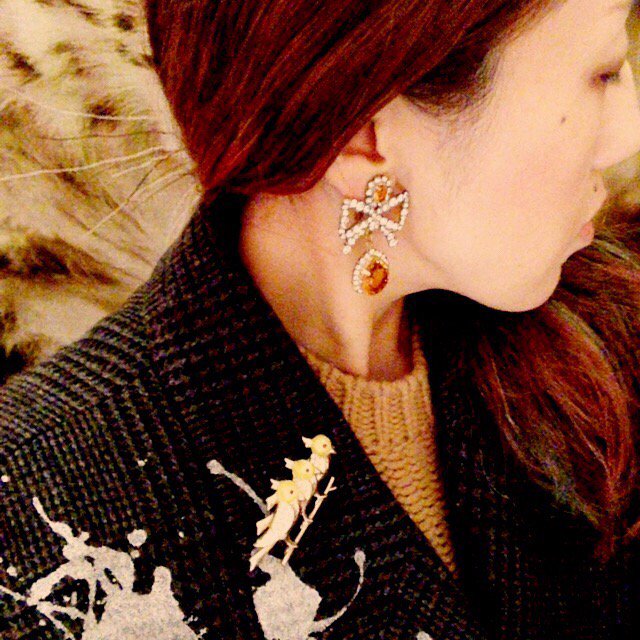 黄色い小鳥がならんだブローチ。なんだかクリスマスの雰囲気にも合っている気がします。 https://t.co/f8DxyHDpxe