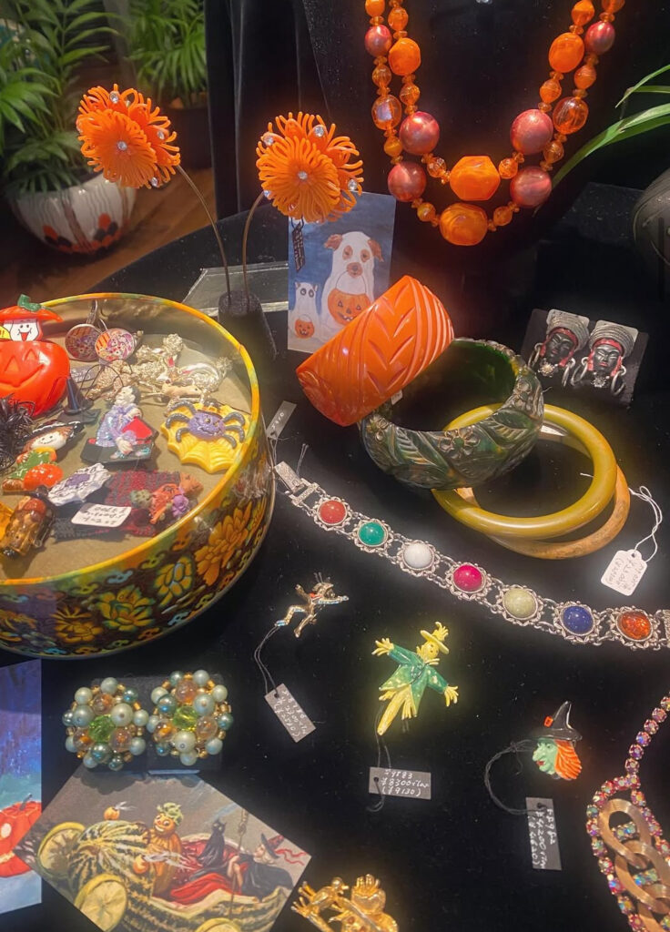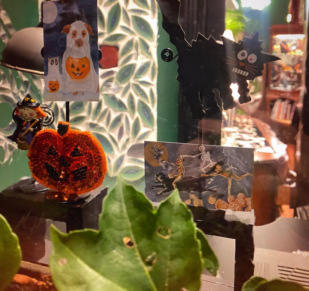 ◆ ご近所のお母様たちが「来週子供のハロウィンで」と寄ってくださることがちらほらの今週。一番手前のテーブルを急遽ハロウィンコーナーに。と言ってもそんなにたくさんはないからオレンジのものも集合〜。