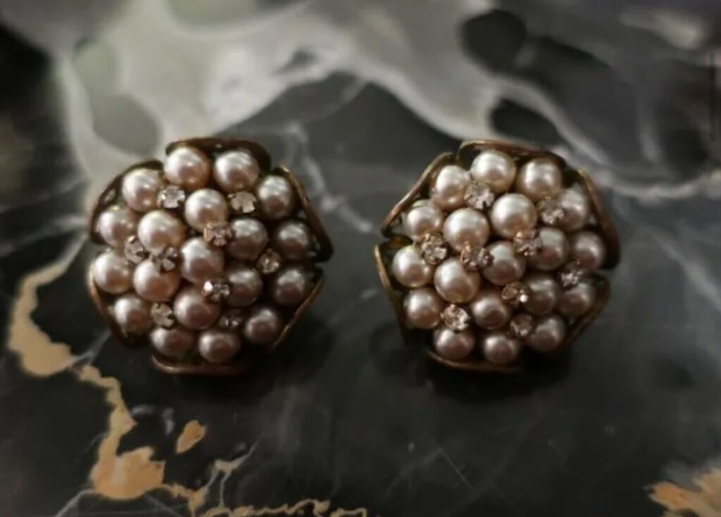 ◆ミリアムハスケルのパールイヤリング。小粒のラインストーンがさりげなく輝きます。online shop updated!