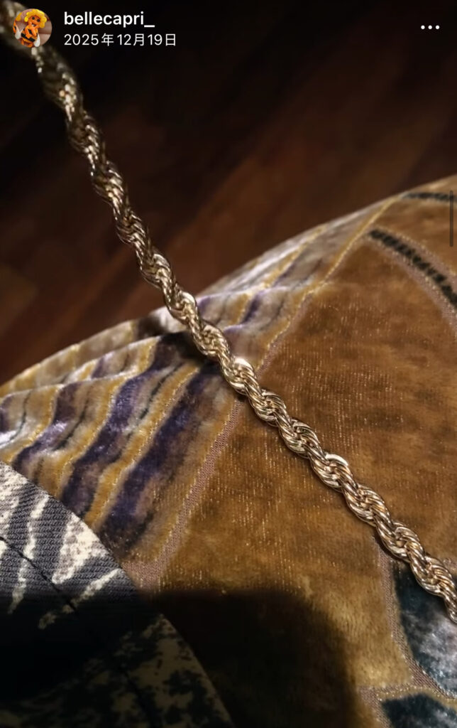 チェーンのカット面がキラキラ輝く美しいブレスレット。なかなかないシンプルなトリファリです。