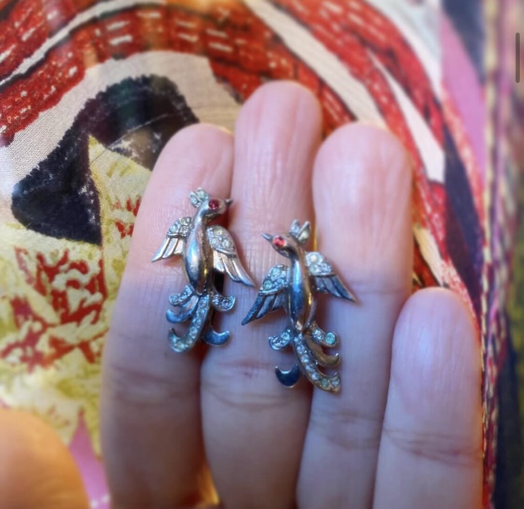 手塚治虫の火の鳥に登場しそうなCoroのシルバー製鳥のイヤリングです。