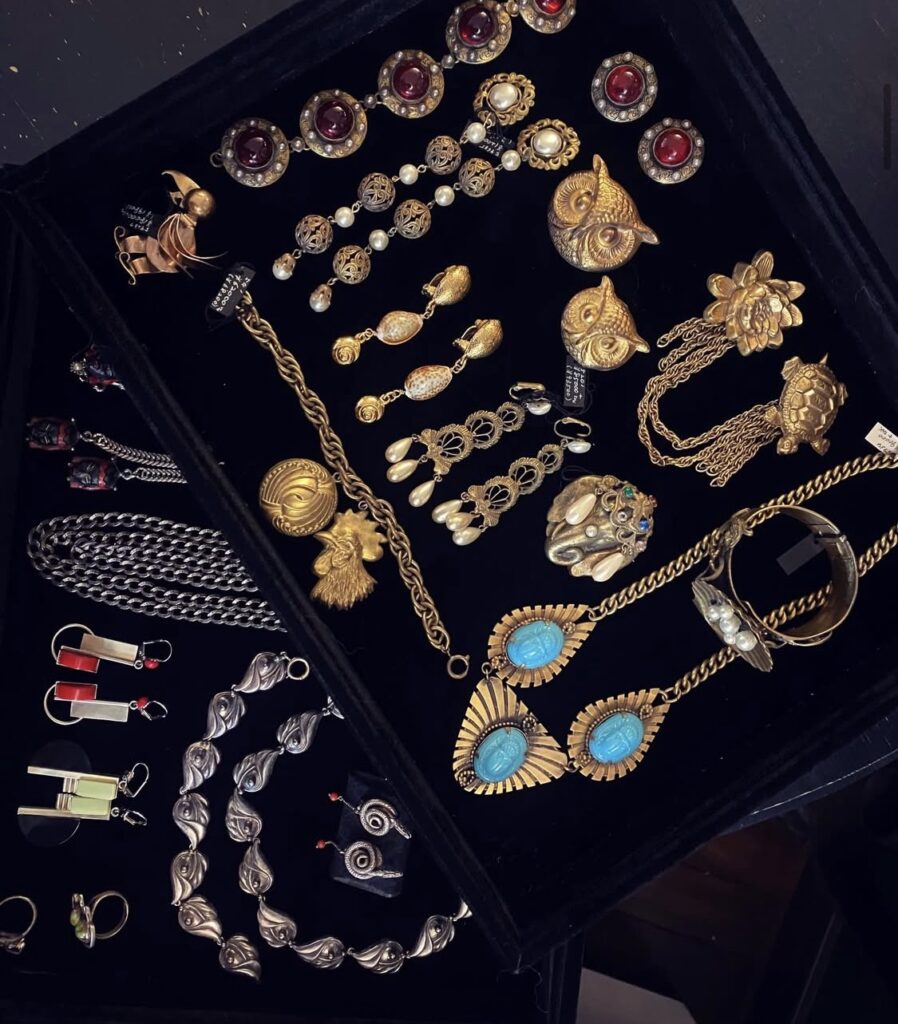 I arranged these pieces on a tray to put them away in the cabinet, but they looked so nice together that now I kind of want to keep them out where I can see them.Joseff of Hollywood collection.English translation with a little help from ChatGPT.