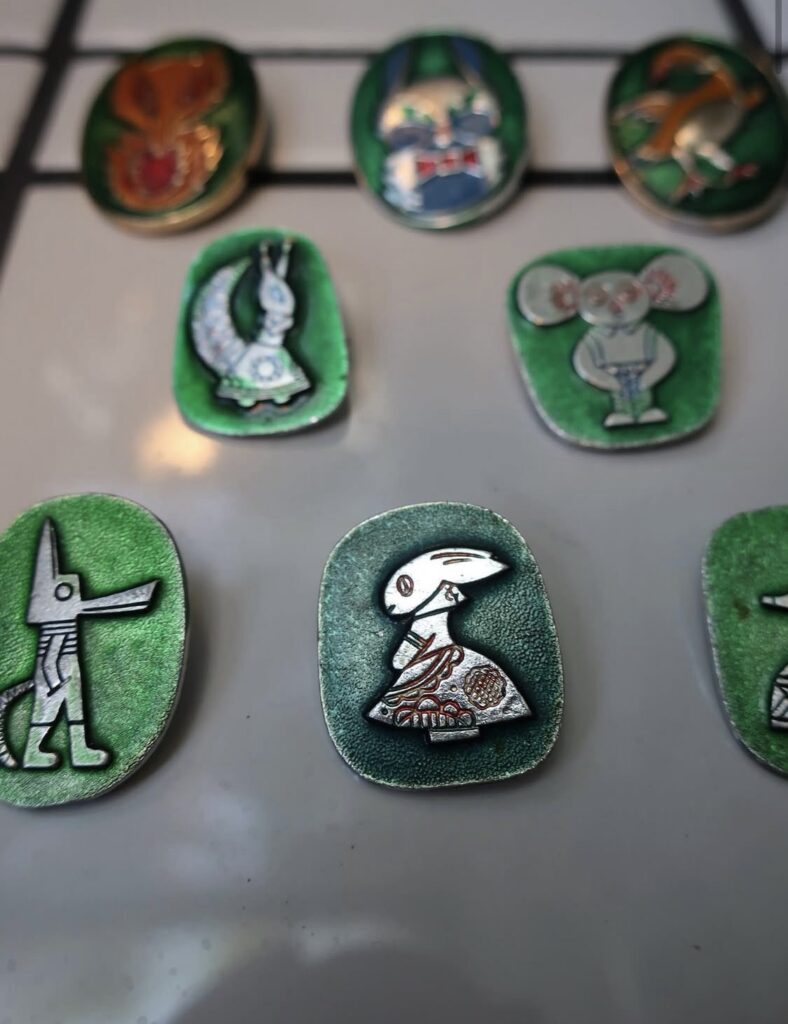 ソビエトの小さなイラストブローチ。色も絵柄も味があります。たくさんの写真を撮りました!