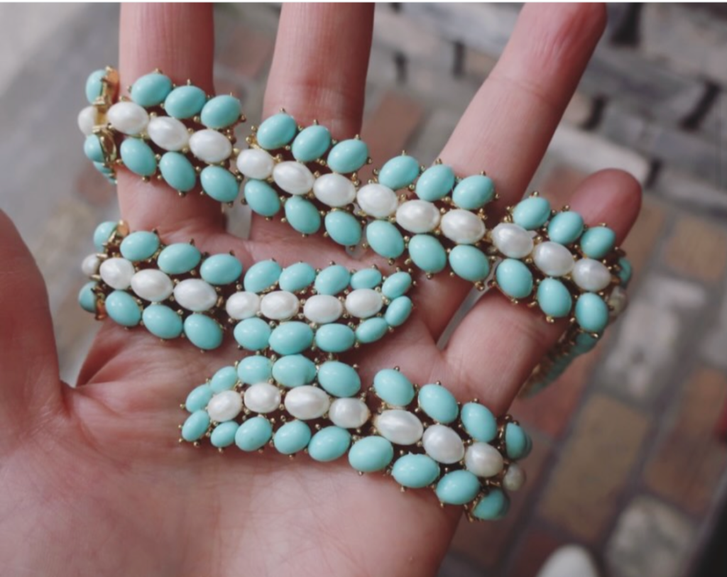 ◆ オンラインショップにtrifariの3点セットを掲載しました。存在感たっぷりのターコイズとパールの3点セット。1960年代最初の頃のヴィンテージでコンディションはとても良いです。