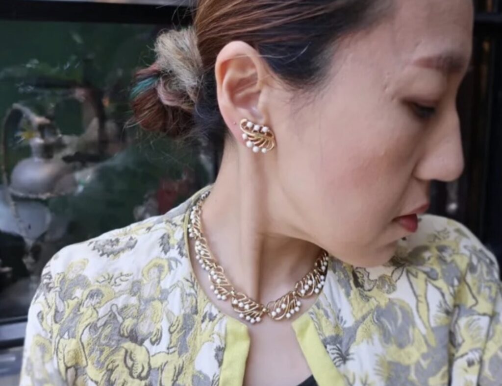 ◆ 置いてみているとそれほど特徴的でも華やかでもないと感じましたがつけてみると一変!とても軽やかで美しいです。これからの季節にもぴったりだと感じたtrifariの3点セット。ネックレス、イヤリング、ブレスレットと揃いで届くと美しさが何倍も増します。