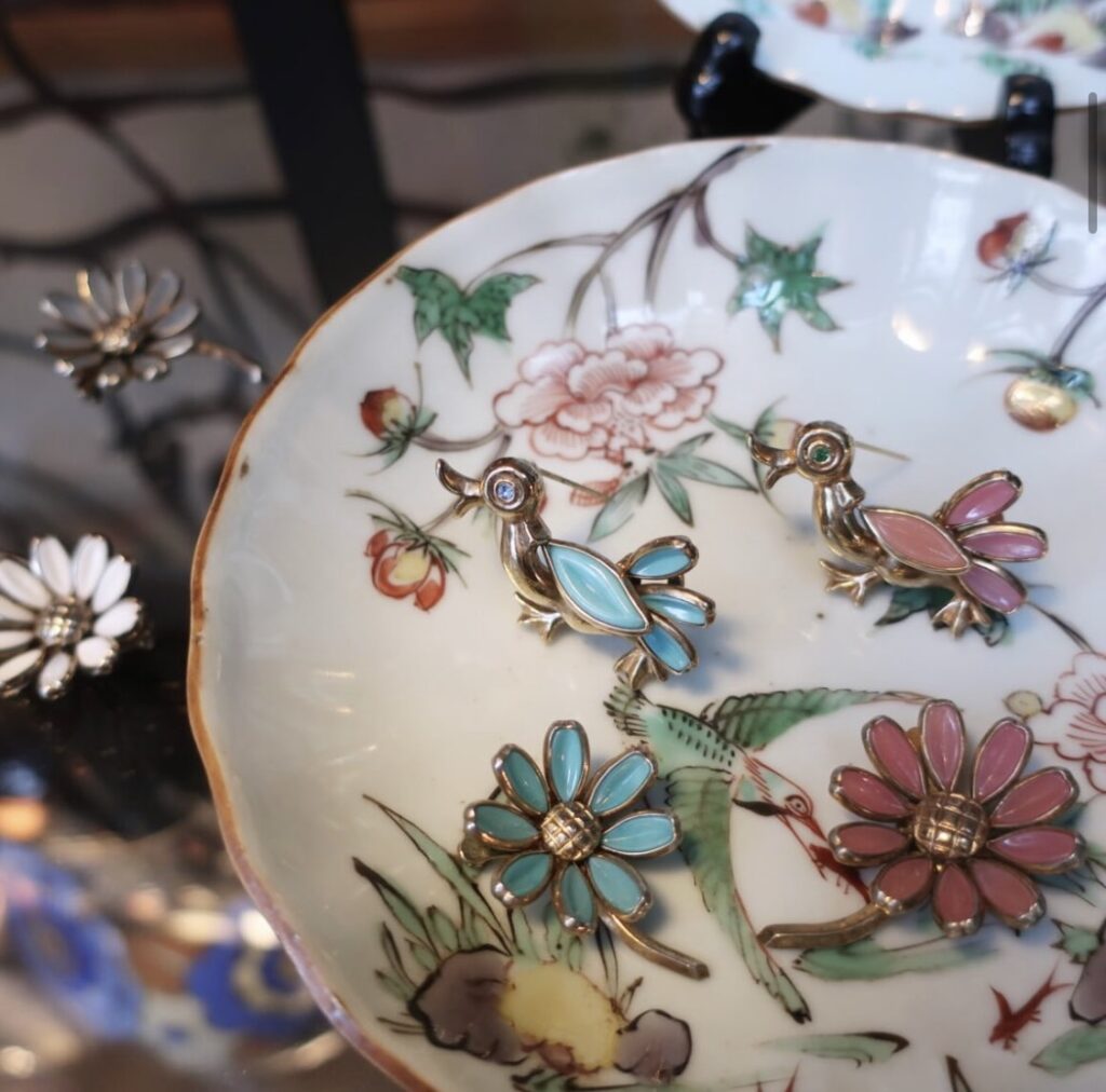 trifari glass flower duck brooch 1950’s vintage SOLD OUT