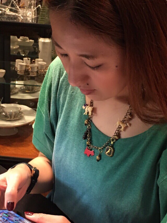 ボスがネックレスの写真を撮ってくれました。各パーツ、どのわんこもクラシックで可愛いです。自ら自供→気になる私のほっぺのブルドッグラインはぼやかしツールで消しました!便利な世の中に感謝ー。 https://t.co/IpY6lX8TT5